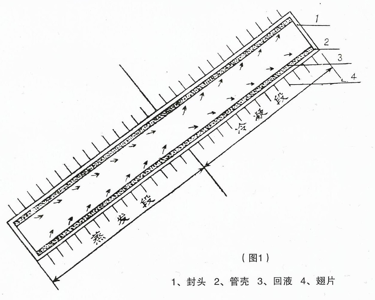 熱管就是將普通的金屬管子抽成真空,注入工作液體后密封的管子。通常是由管殼、管芯和工作介質(zhì)三部分組成。重力式熱管利用重力場回流,不設(shè)管芯。(圖1)